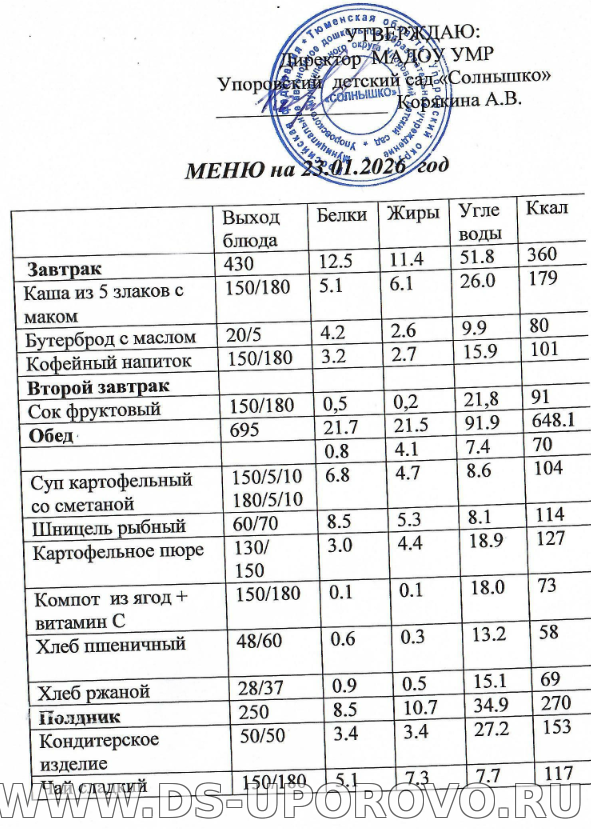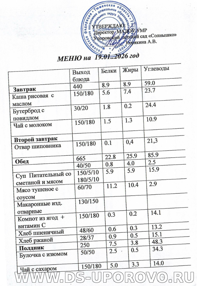 Меню на ЯНВАРЬ 2026 год