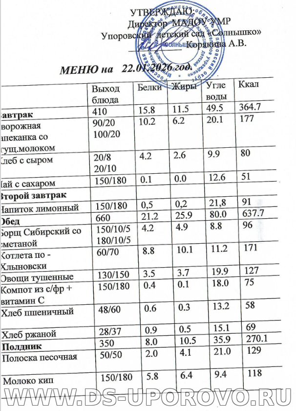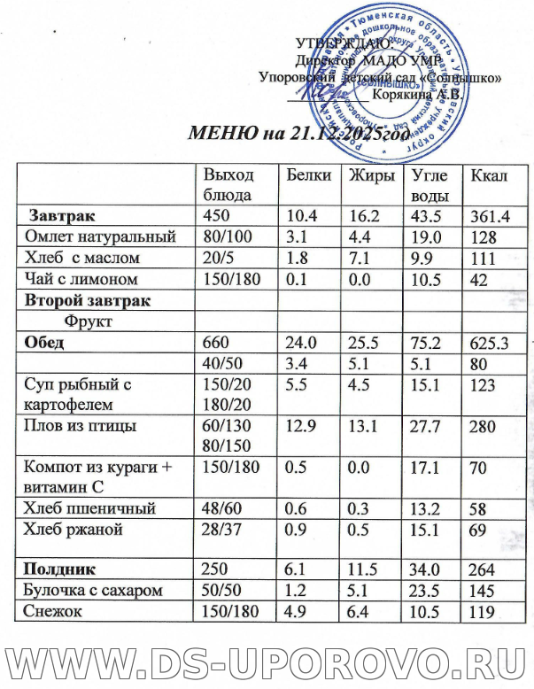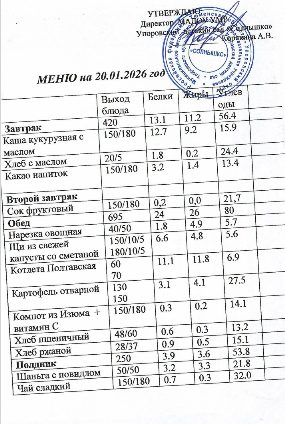 ПРИМЕРНОЕ 20-ти дневное меню №20-ДС/3590-20/92 от 20.01. 2021г.
